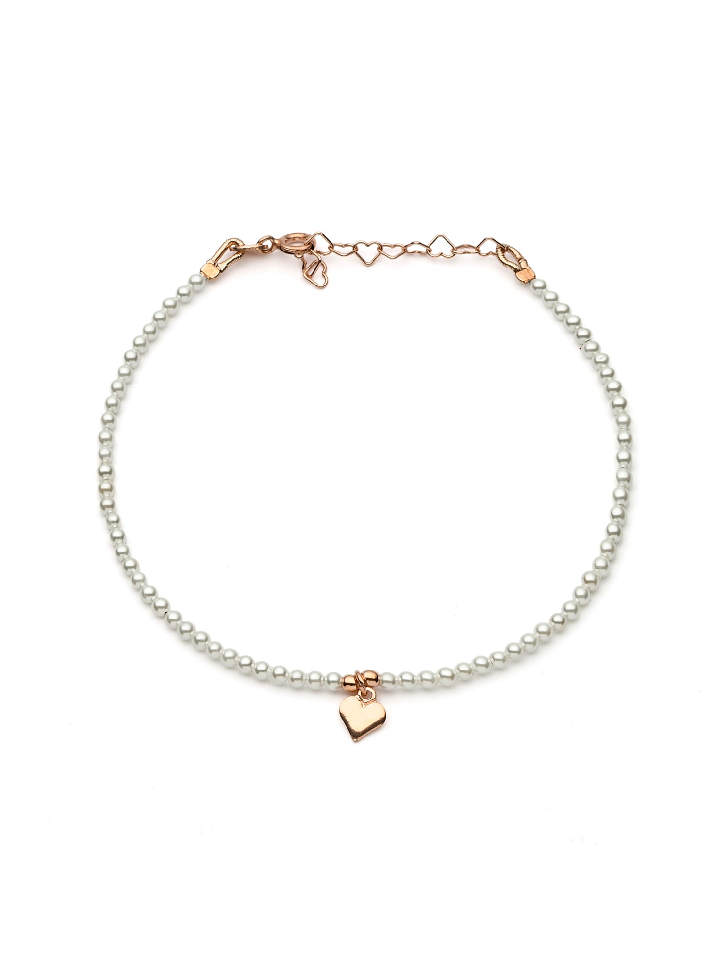 Bracciale in Argento925 Rosè e mini perle di fiume del diametro di 0.2 mm, con pendente a cuore liscio centrale. Lunghezza cm. 18 oltre a catenella di allungamento di cm. 3. Made in Italy, . Le Luci di Gaia Gioielli in Argento 925. Spedizione in tutta Italia