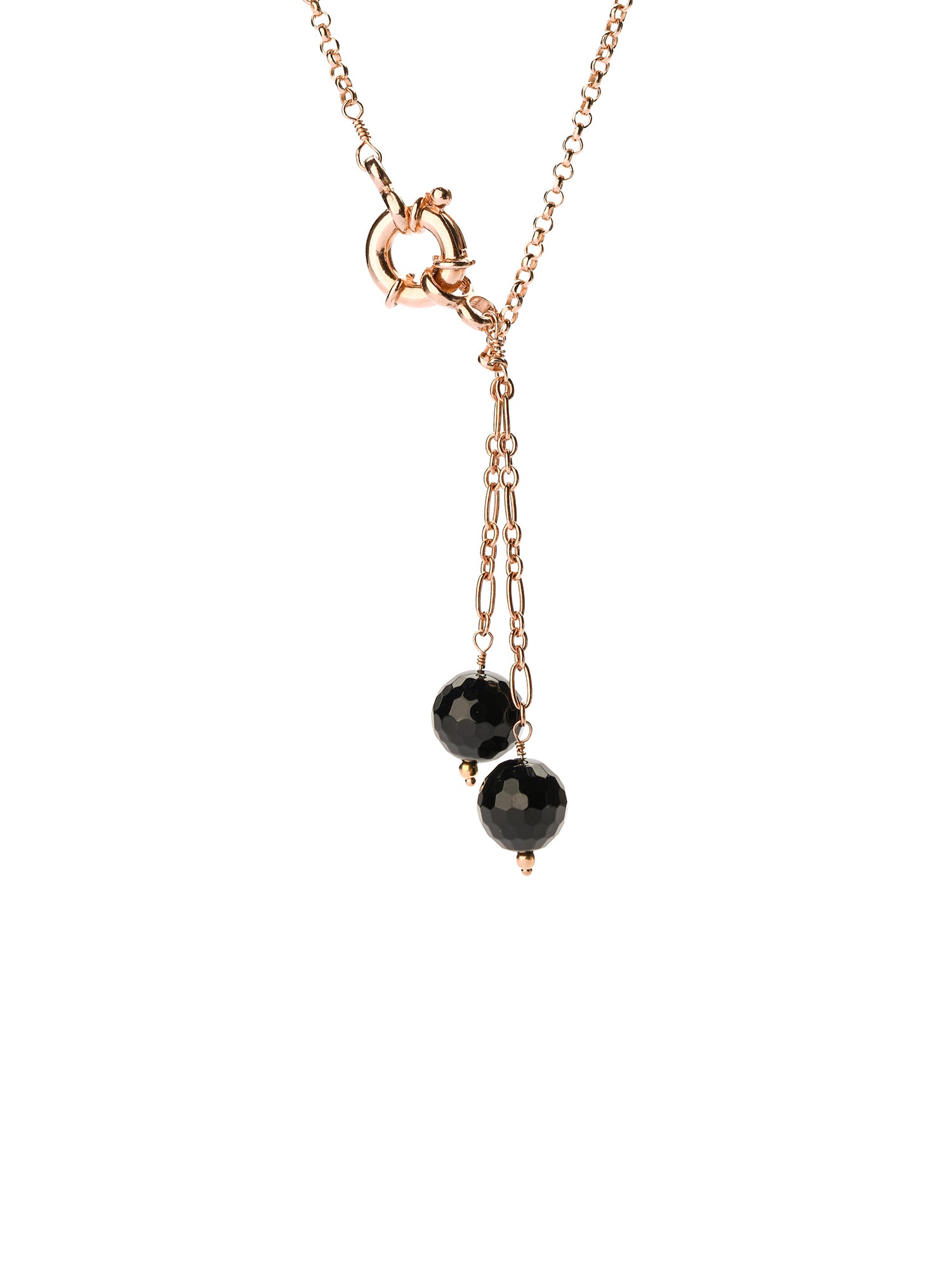 Collana in argento925 Rosè, con catena a Rolo, moschettone e terminale con due pendenti pietre dure nere pietre dure. Lunghezza totale cm. 70 Made in Italy, Le Luci di Gaia Gioielli in Argento 925. Spedizione in tutta Italia