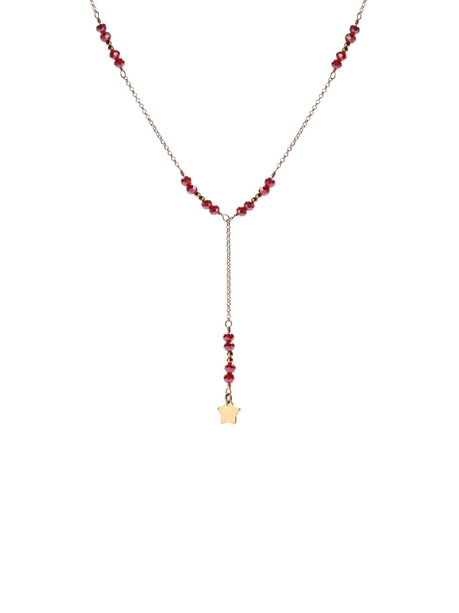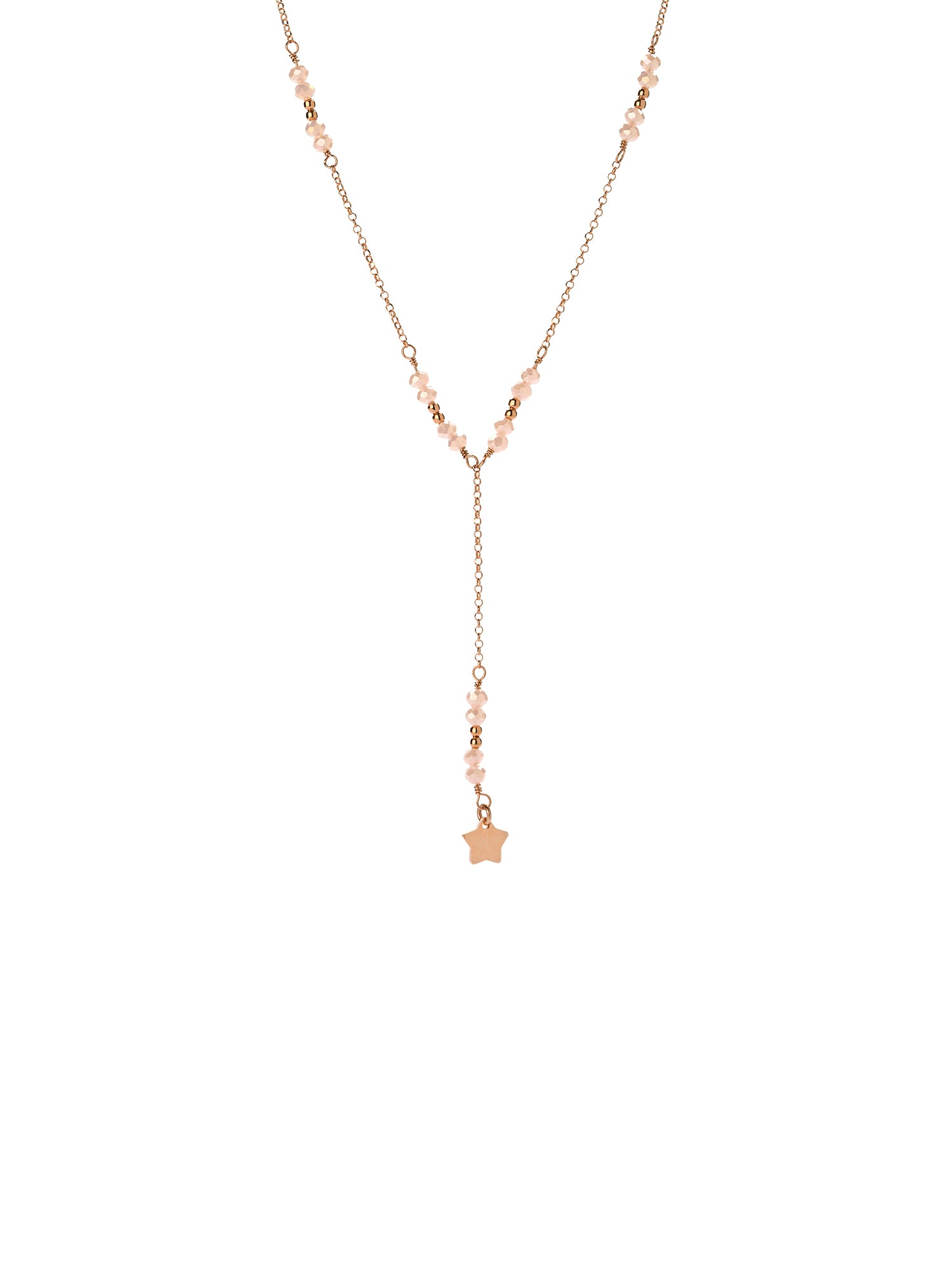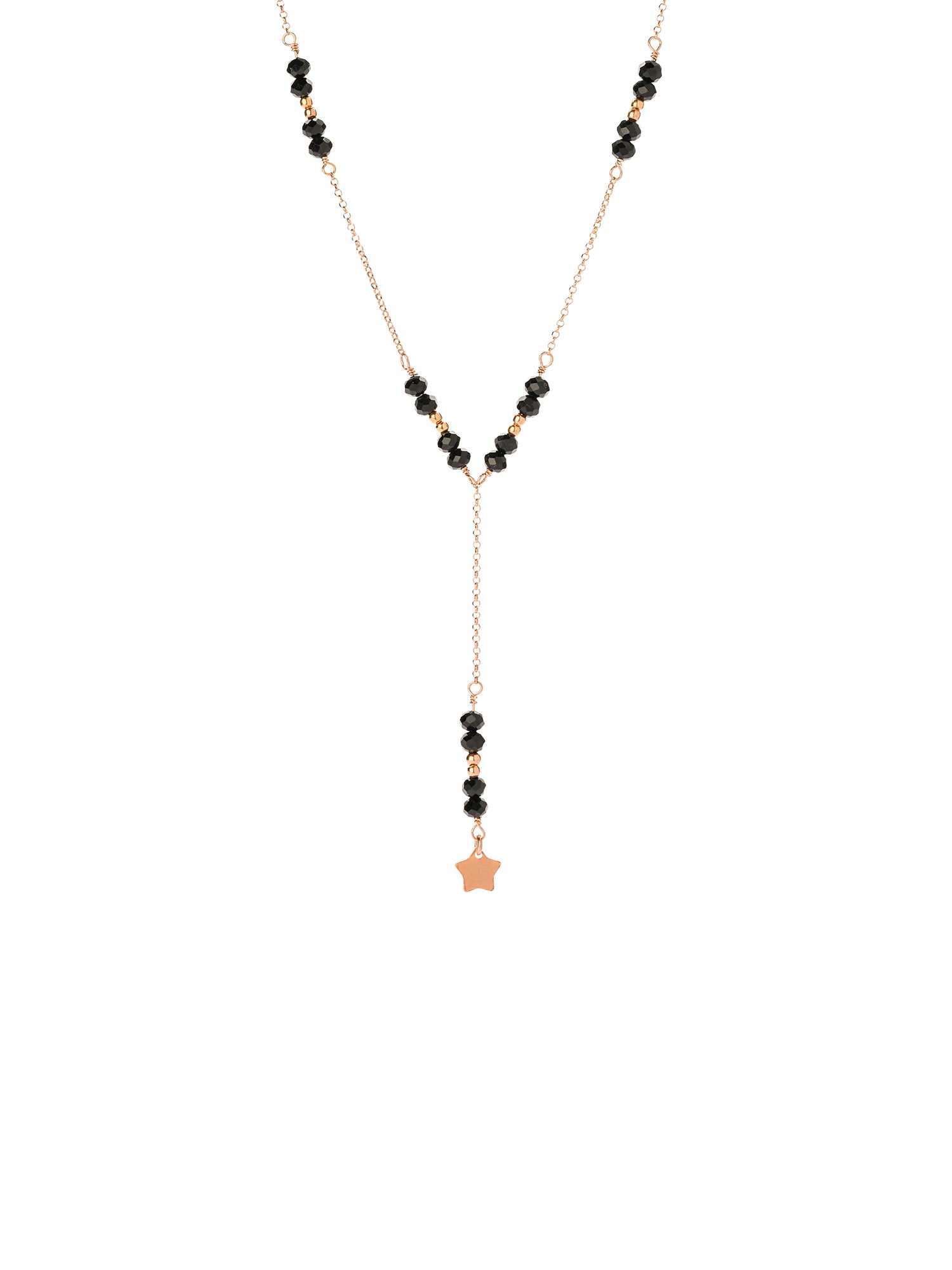 Collana in argento925 Rosè, con cristalli colorati (rosa, nero e rubino) e pendente a stellina liscia Lunghezza cm. 40+ 5 cm di catenella + cravattina c. 6 cm. Made in Italy, Le Luci di Gaia Gioielli in Argento 925. Spedizione in tutta Italia