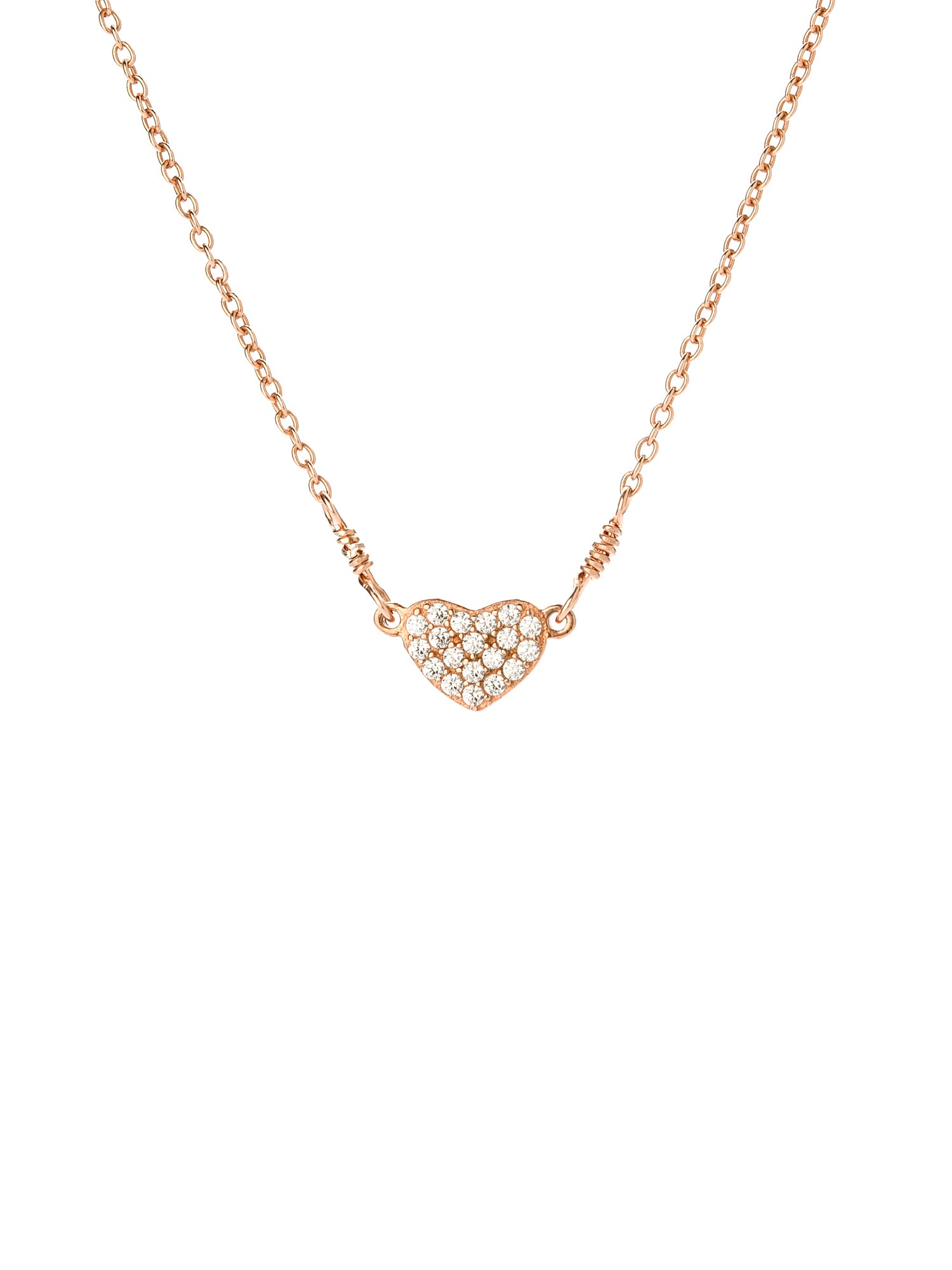 Collana in argento925 Rosè, con maglia rolo' e cuore piatto centrale con micro zirconi bianchi Lunghezza cm. 40 cm + 5 cm di catenella. Made in Italy, Le Luci di Gaia Gioielli in Argento 925. Spedizione in tutta Italia